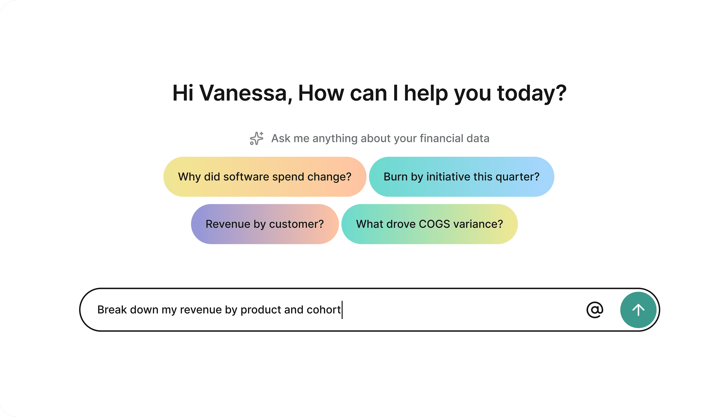 Ask any question about your finances and get a clear, verifiable answer you can trace back to the source with our agentic reporting layer.