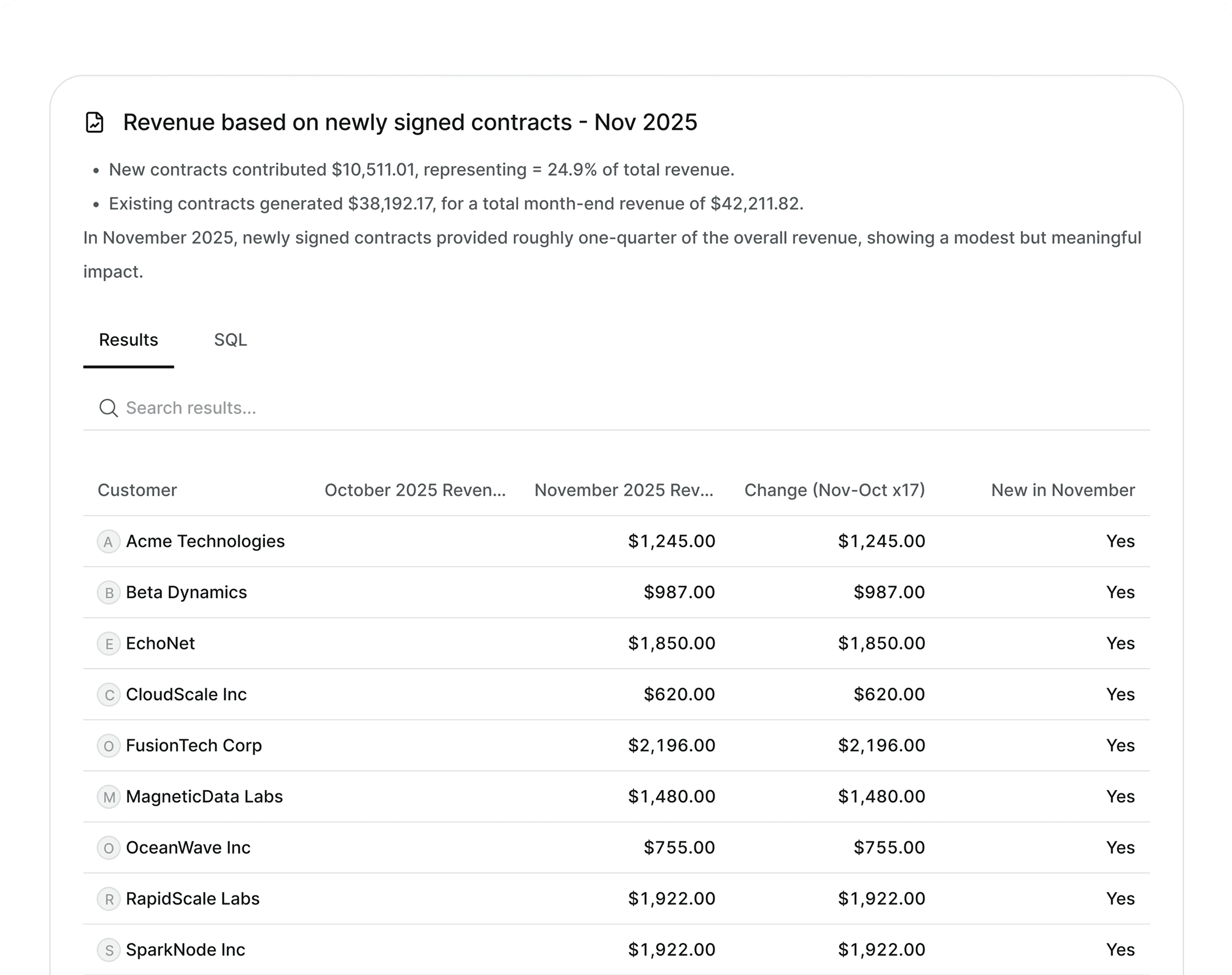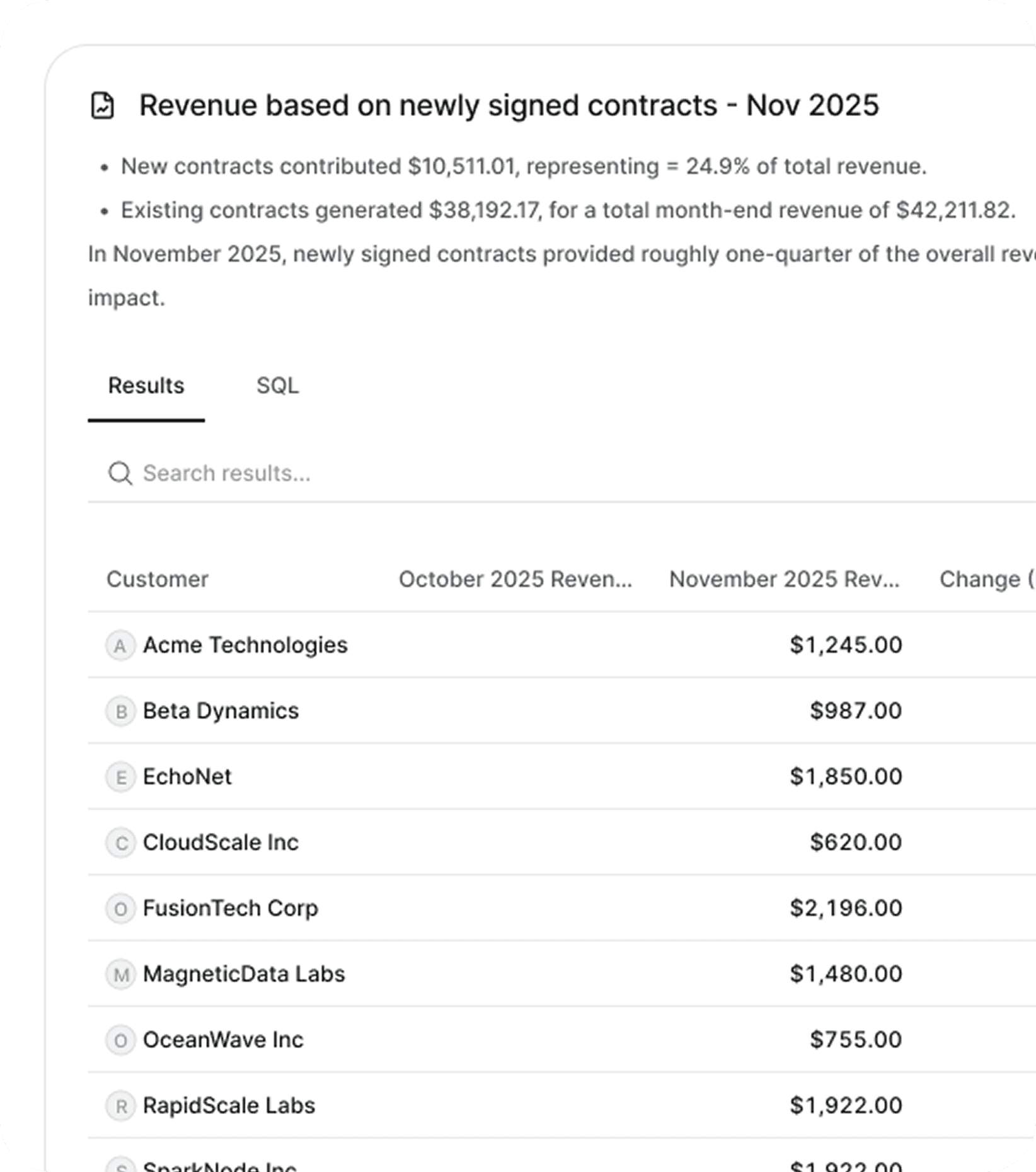 Every answer is traceable back to the source, so you never need to defend a number you can’t prove.